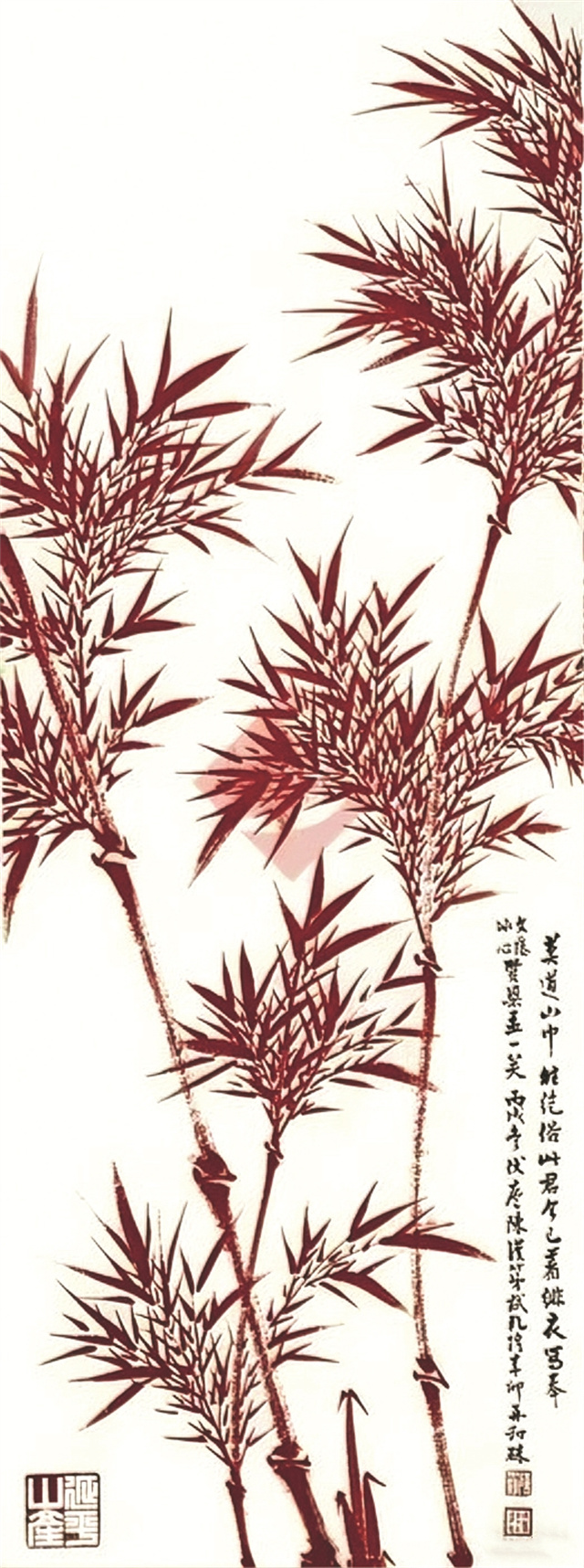陈伏庐国画《朱竹图》(1946),冰心捐赠 中国现代文学馆 藏