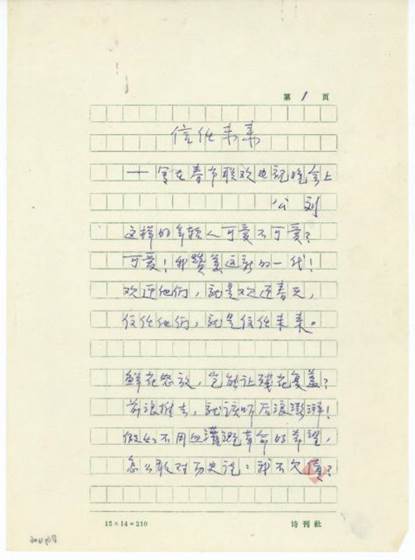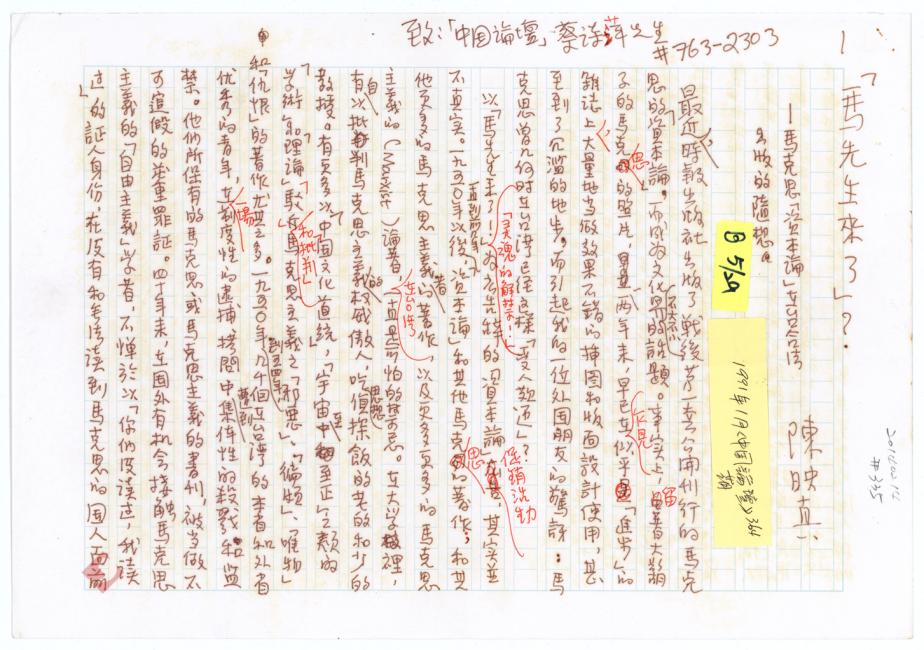 陈映真《马先生来了?》手稿首页