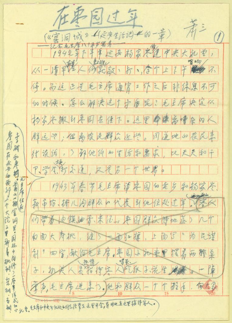 萧三《在枣园过年》手稿首页