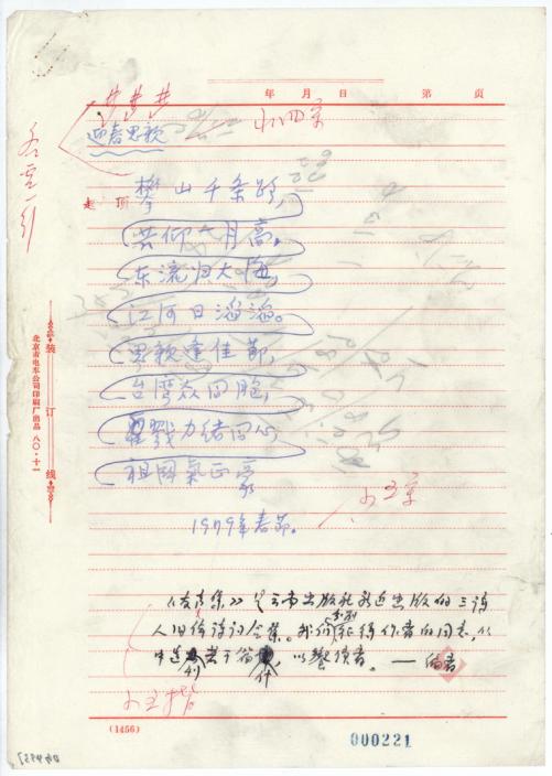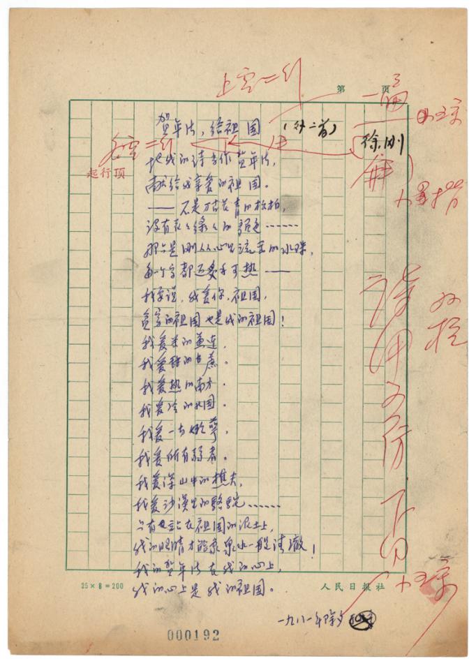 徐刚《贺年卡,给祖国》手稿