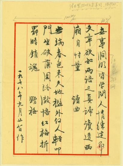 茅盾《题红楼梦画页》手稿