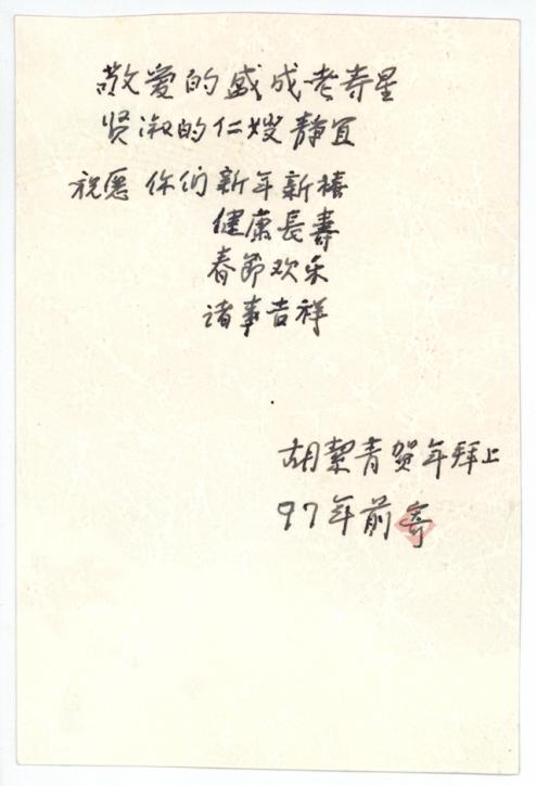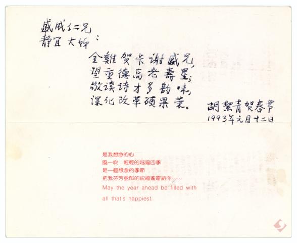 胡絜青致李静宜、盛成贺年卡1993、1997、2000