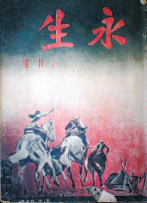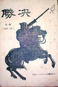 杂志创刊号的封面,展现了几位勇士跃马扬鞭、手持刺刀冲向敌人的英勇姿态。画面生动展现了中华民族不屈服于强权的英雄气概,封面下方标注着“求‘生’的道路”一行字,是对时代的回应。